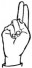 На ћирилици написано РАДЕ ЈОВАНЧЕВИЋ састоји се из 14 слова [?]. Исписано ћириличном једноручном азбуком за глувонеме: